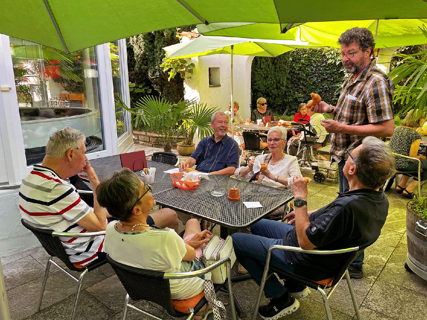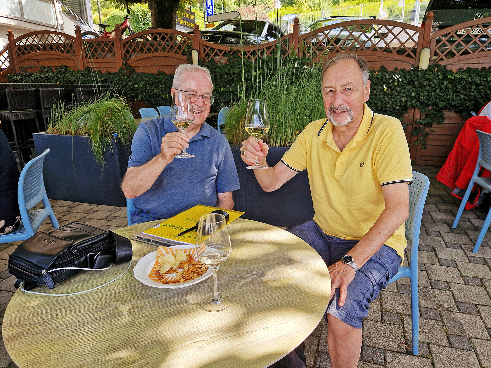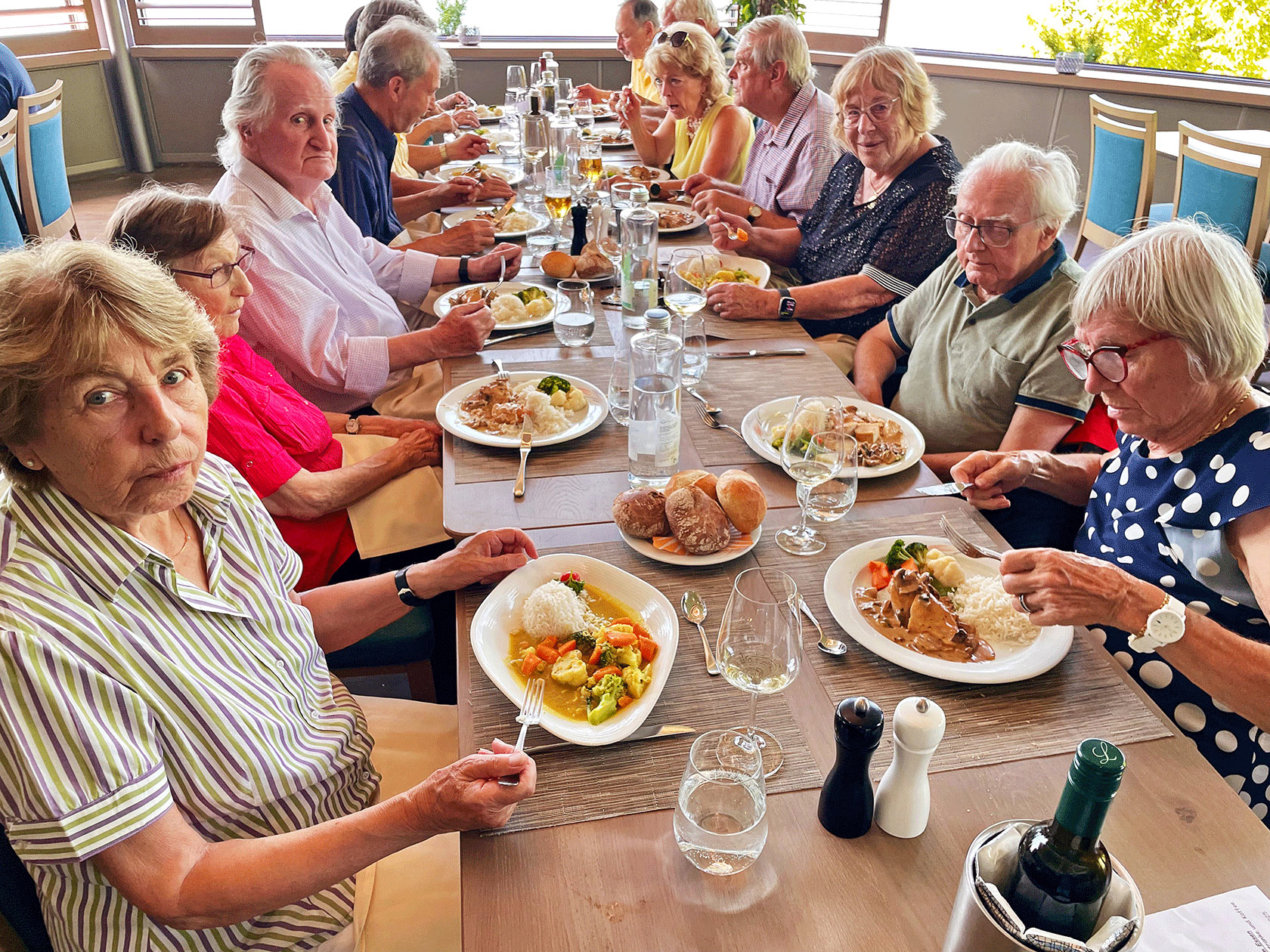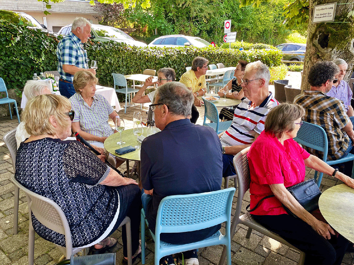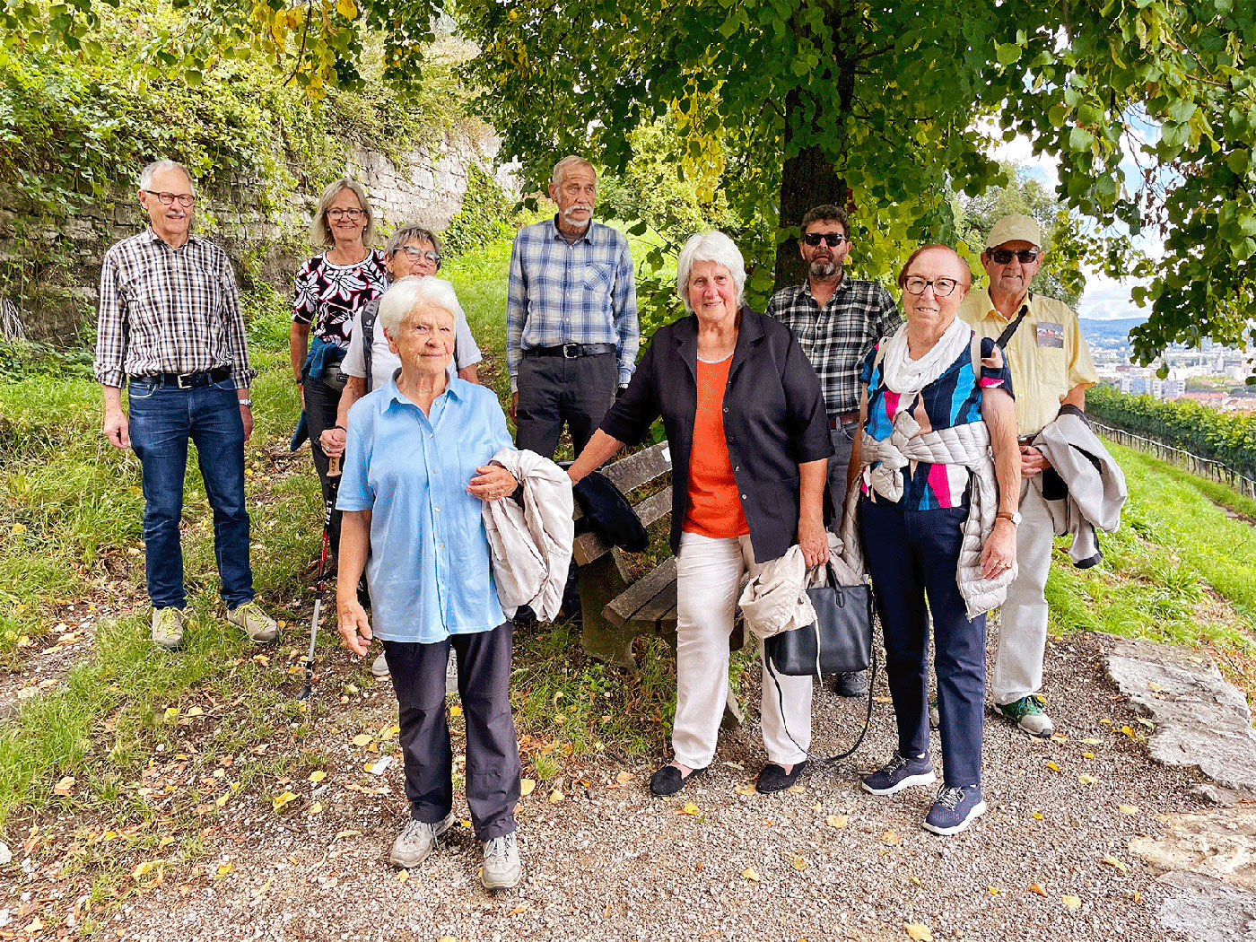 Nach dem Mittagessen hat sich eine kleine Gruppe, auf dem «Markgräfler Wywägli» Richtung Hörnli auf den Weg gemacht. Diese wurden bei schönstem Wetter mit einer wunderbaren Aussicht auf Grenzach, den Rhein und Basel belohnt. Nach ca. einer halben Stunde erreichte die Gruppe wieder eine Busstation und alle machten sich von dort aus selbständig auf den Heimweg.